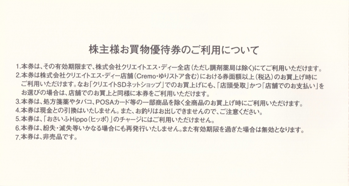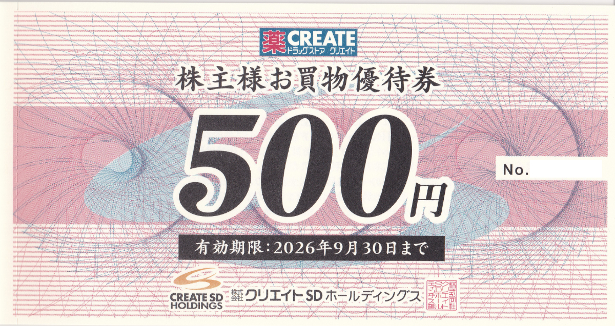 クリエイトSD株主優待券(500円券)(3枚綴冊子)(2026.9.30)