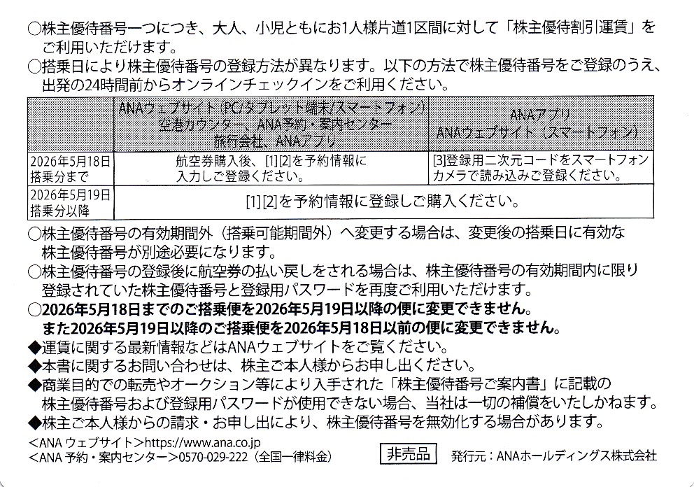 ANA株主優待券(株主優待番号案内書)(2027.5.31)