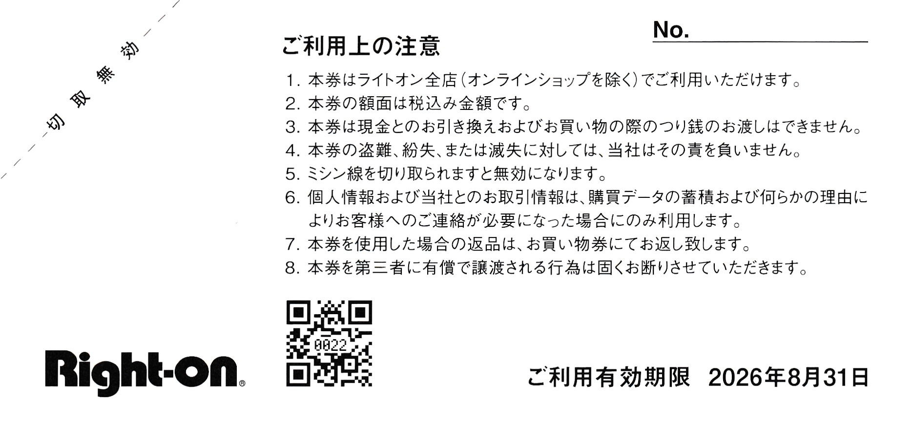 Right-on(ライトオン)株主優待券(1,000円券)(2026.8.31)