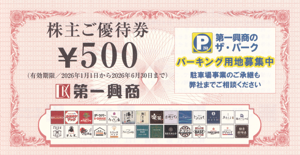 ビッグエコー(第一興商)株主優待券(500円券)(10枚綴冊子)(2026.6.30)