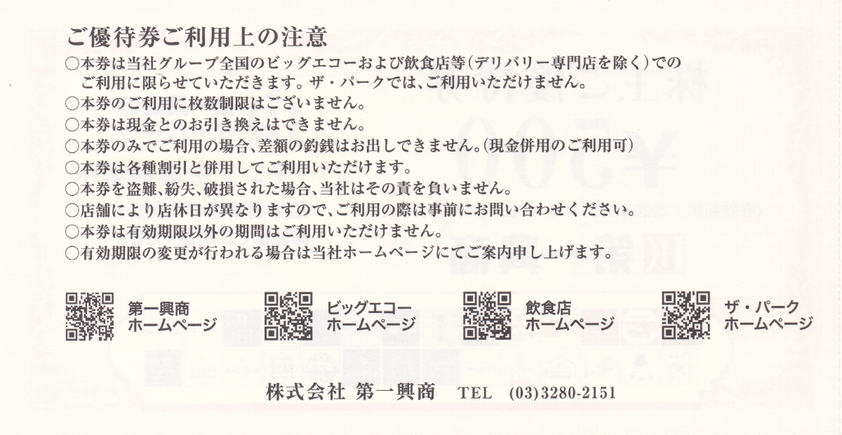 株主優待券の利用に枚数制限はございません。株主優待券は、ビッグエコークラブダムメンバーズカード会員割引と併用して利用いただけます。