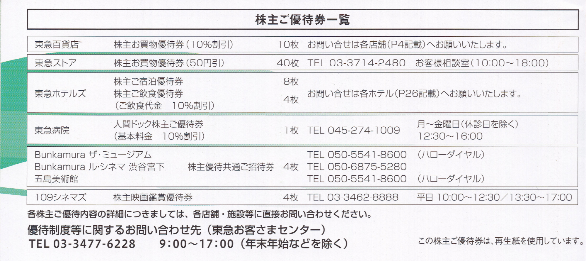東急株主優待券(冊子)(500株)(2026.5.31)