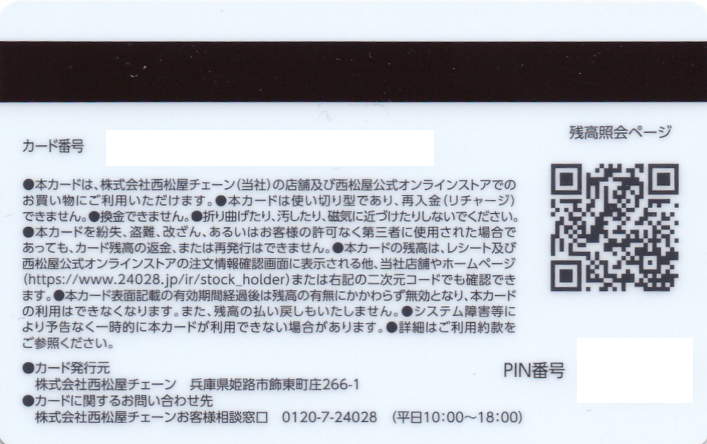 西松屋チェーン株主優待カード(1,000円)(2026.5.3)(PIN削)