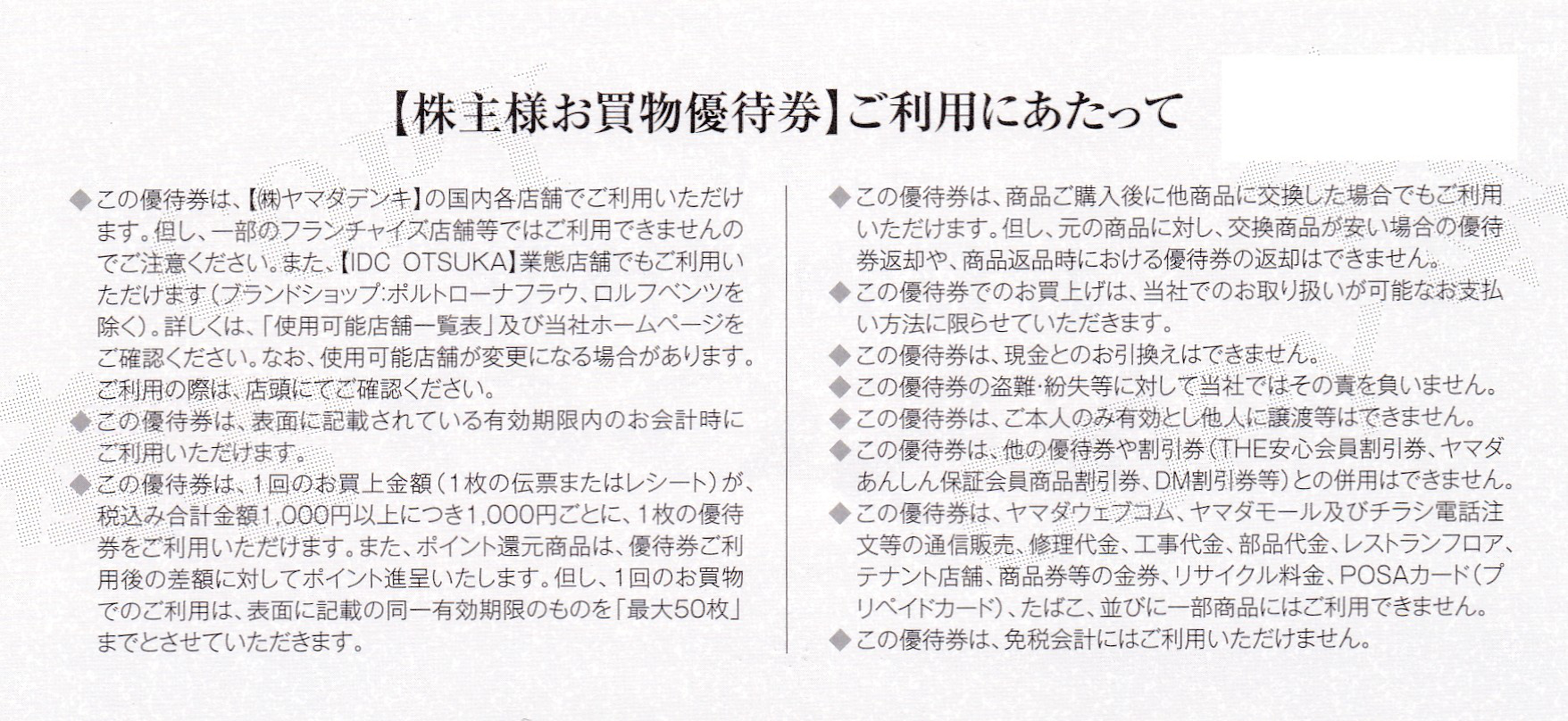 買い上げ金額1,000円ごとに、1枚使用できます。(同一有効期限のもの最大50枚までの利用限度)