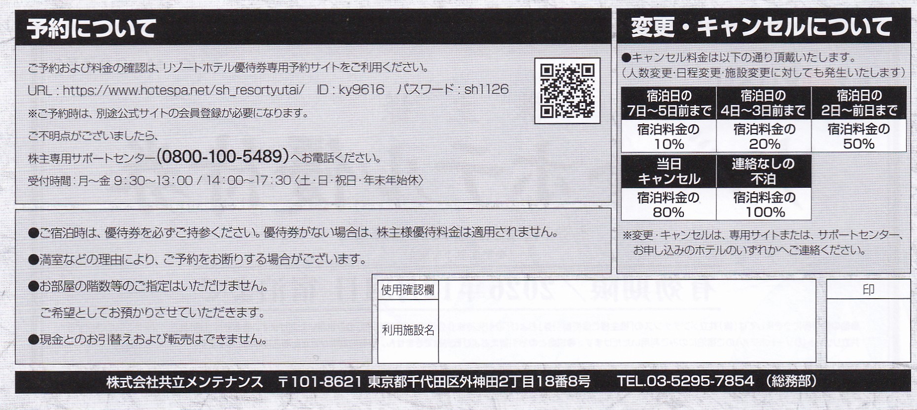 共立メンテナンス・リゾートホテル優待券(2026.12.31)