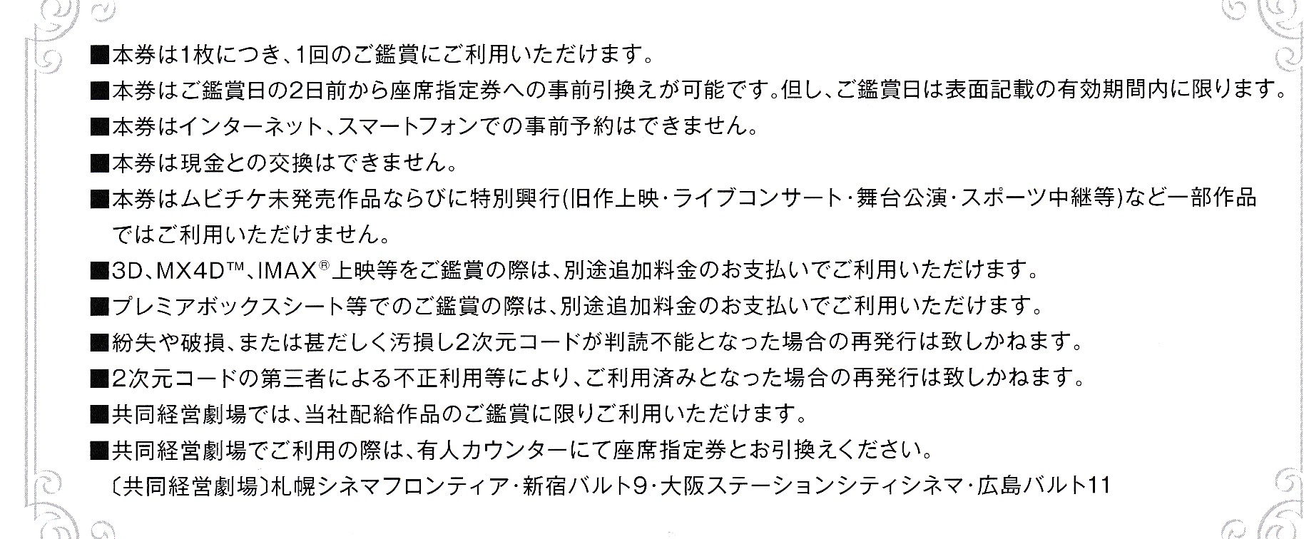1枚につき、1回の鑑賞に利用できます。