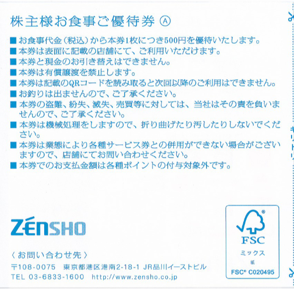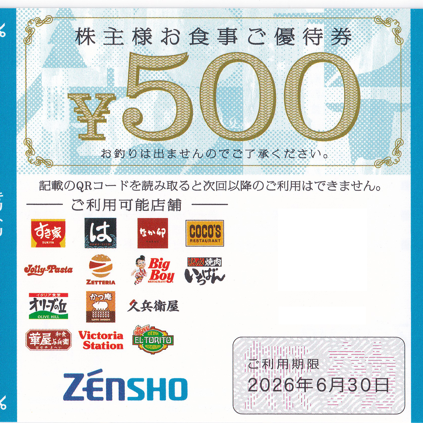 はま寿司・すき家(ゼンショー)株主優待券(500円券)(6枚綴冊子)(2026.6.30)