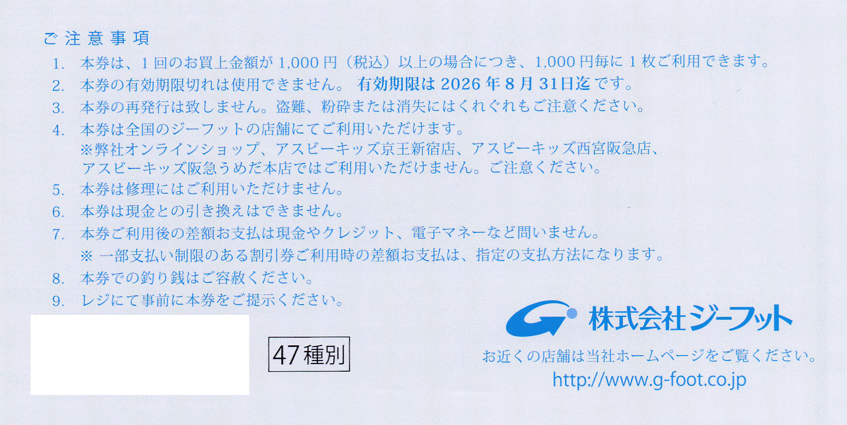 ジーフット株主優待券(1,000円券)(2026.8.31)