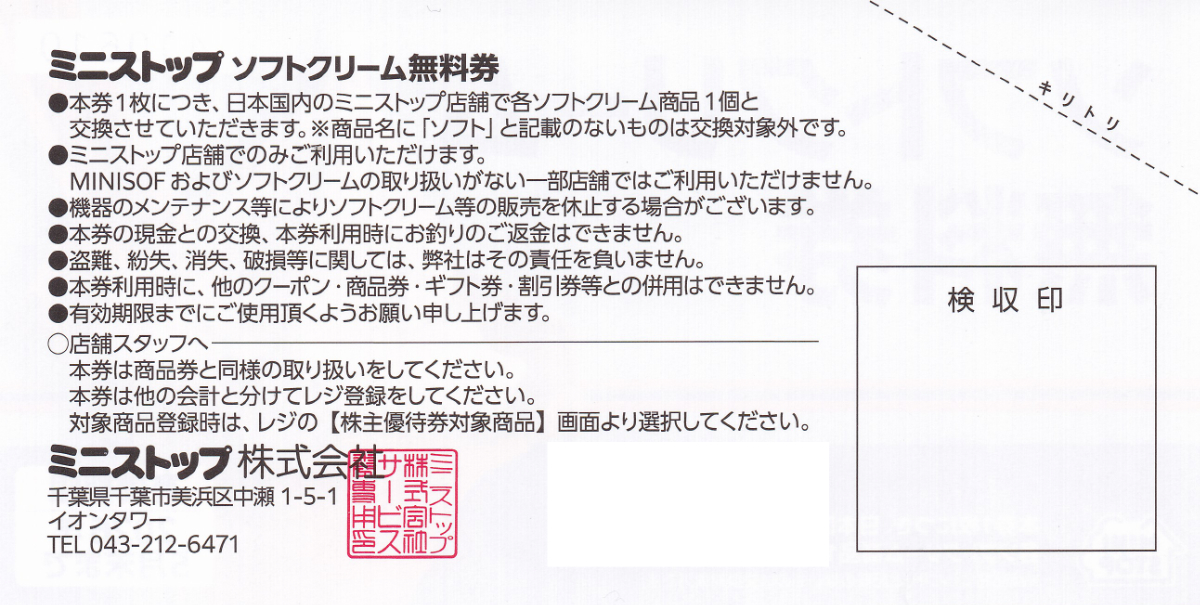 ミニストップ(ソフトクリーム無料券)(5枚綴冊子)(2026.5)