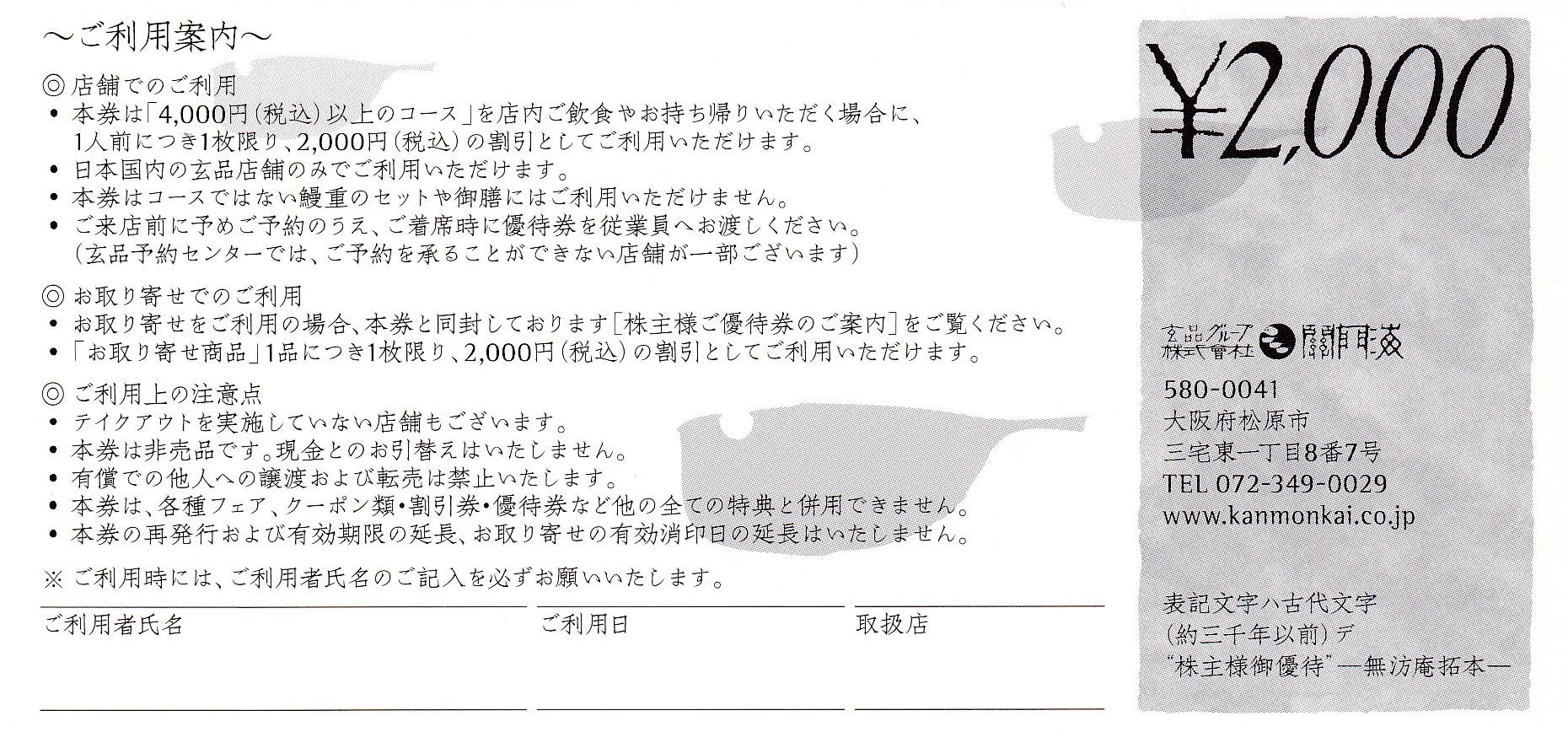他の割引券、フェア、別格コース、季節膳など他の特典との併用はできません。