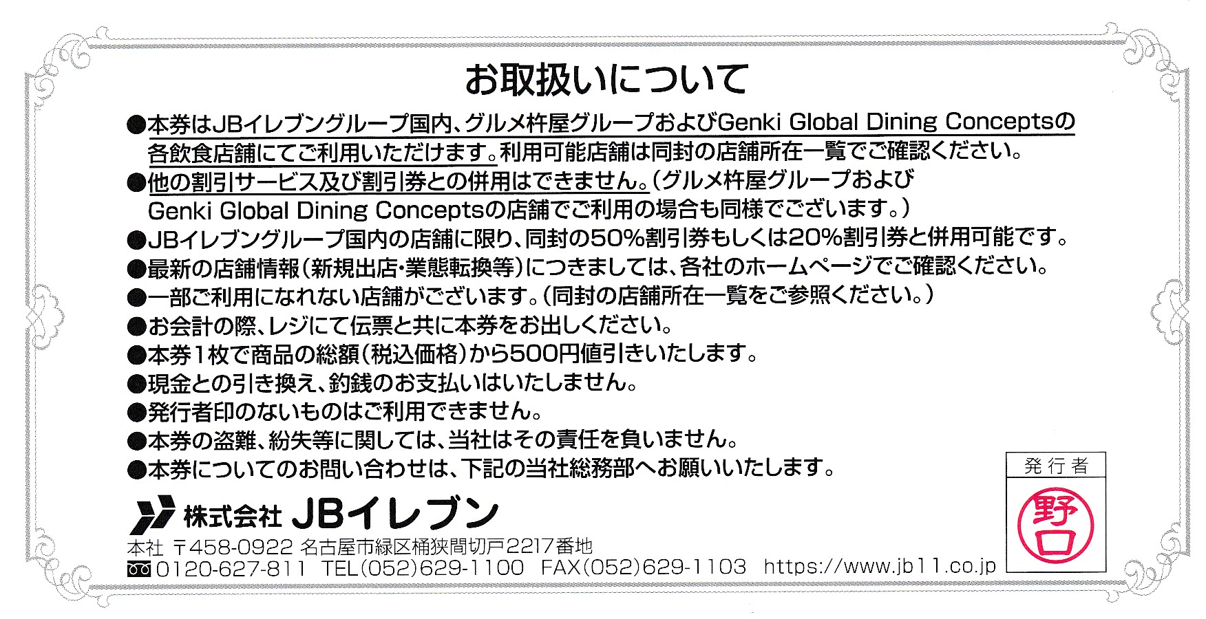 JBイレブン株主優待券(500円券)(2026.7.31)