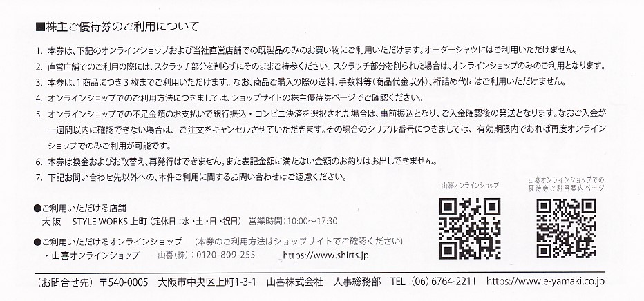 山喜株主優待券(1,000円券)(2025.7.31)